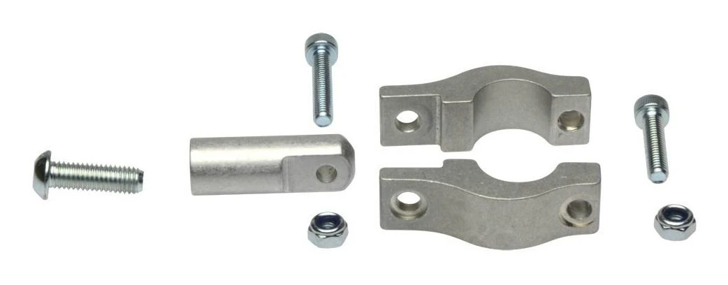 Single replacement clamp assembly with 45mm spacer and hardware for 7/8″ handlebar Barkbusters kits. Sold each.