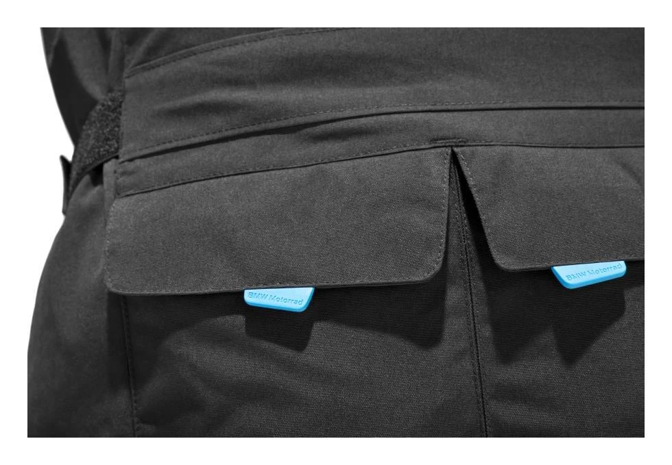 This “Plus” version of the jacket also packs a quilted thermal vest liner for added versatility. A full suite of BMW NPL impact protectors is included for the elbows and shoulders. Dual rear stash pockets at the lower back are asymmetric to organize all sizes of gear. Bright blue pull tabs make for an easy grip on the pockets and accessories. Using the jacket to pants connection zipper, the Essential Jacket can be made into a full touring suit with the addition of the BMW Essential Pants. .