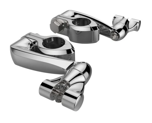 These clamps are an easy way to add some pegs to your 1 1/4″ diameter highway bars. Designed to swivel your pegs to where you want them.