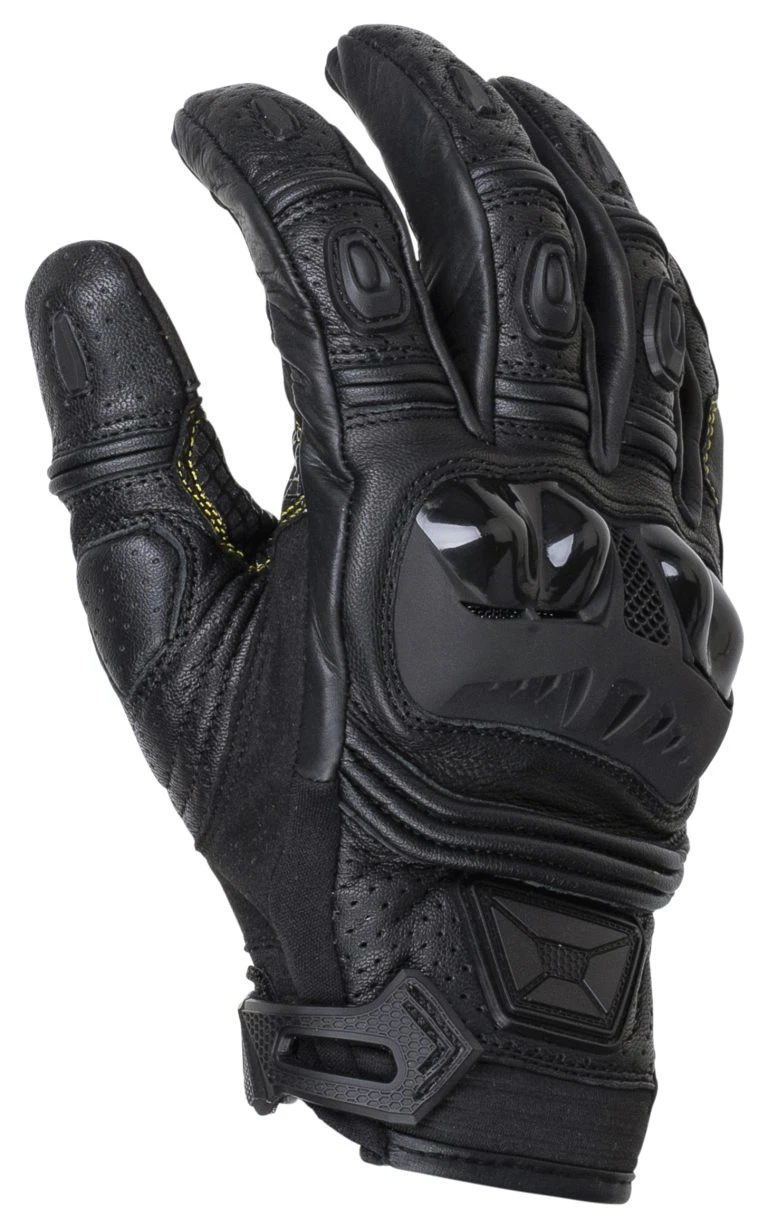 The Chicane ST Gloves are a short cuff version of Cortech’s full gauntlet Chicane RR Gloves. The track inspired design features full leather construction with goat hide applied at the palm for better flexibility and feel. Reinforcement of Clarino leatherette over the palm, again, adds protection and durability where it counts most. Hard TPU finger and knuckle protection are carry-overs from the track. Silicone grips at the index, middle finger and crook of hand maintain good communication between rider and throttle. Touchscreen-friendly fingertips keep you in communication with your smart devices. Perforation covers the entire back of the Chicane ST Gloves, from the fingertips to the hook and loop wrist closure.