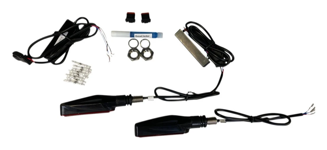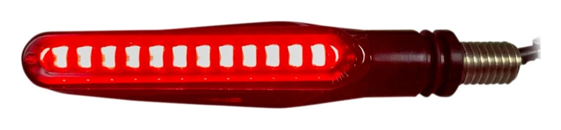 The compact turn signals with super bright LEDs provide an eye catching turn signal in a compact sealed unit. The front offers a bright white running light with amber turn signal. When the turn signal is activated the white light turns off to provide greater visibility to the amber turn signal. The red rear signals offer dual function running light and turn signals.