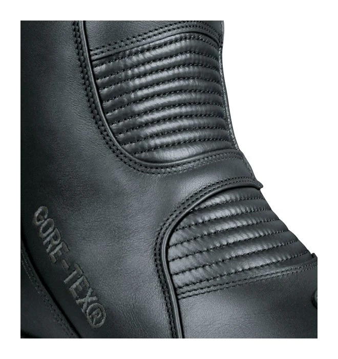 A svelte reimagining of the popular Daytona Lady Star Boots, the Daytona Lady Pilot GTX Boots utilize Daytona’s clever integrated heel lift for six centimeters additional stand-over height when straddling the motorcycle. The positive footing afforded by this innovative design is matched aesthetically by the commanding presence and refined ergonomic features abounding in the Daytona Lady Pilot Boots. Readily apparent is the sophisticated style, but the fit has been similarly polished with a generously improved adjustable calf closure and elasticated inserts in the ankle area that flex to allow for a snug fit, conforming to the shape of the leg for excellent comfort and dexterous acuity.