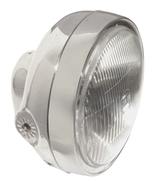 These 6 1/4″ side-mount headlights add a great-looking style to almost any bike. Available in chrome or gloss black shells with chrome bezels and includes a 60/55W H4 bulb and a glass lens. Mounts measure 6 1/4″ between fork ear mounting points, and accept 10mm hardware (not included). The Emgo Side-Mount Headlight Brackets are also available in black or chrome finish.