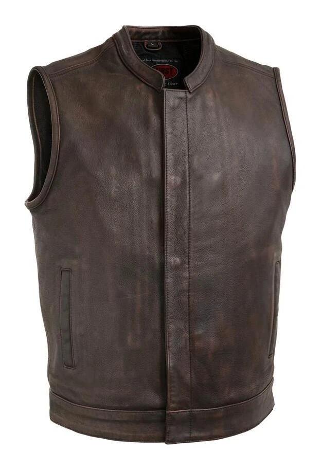 The First Manufacturing Top Rocker Vest is made for the party. The back of the Top Rocker is a single panel of canvas, so you can personalize your vest with patches. This club-style vest has a stand-up collar.