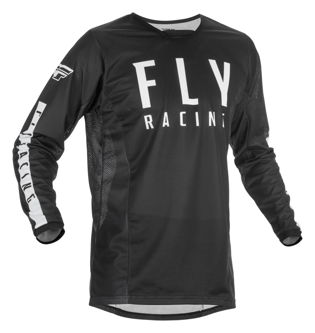 For hot weather riding, the Fly Racing Kinetic Mesh Jersey is your answer. The dual-layer mesh construction provides a much greater opportunity for airflow and moisture management with durability that easily matches conventional jersey materials. The stretch, multi-panel collar creates a comfortable fit and integrates well with roost guards and impact armor, worn either on the inside or outside of the gear. The standard MX fit balances mobility with semi-tapered tailoring. Looking like a pro is guaranteed. Riding like a pro is on you.