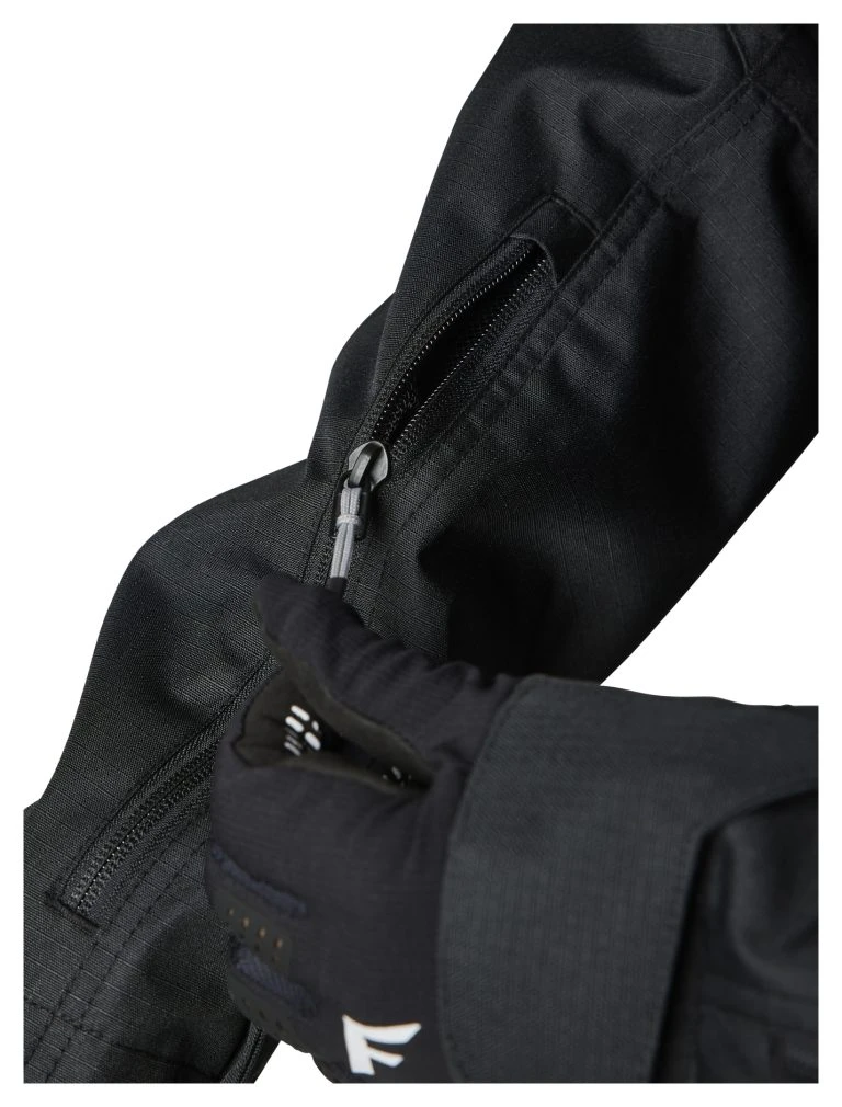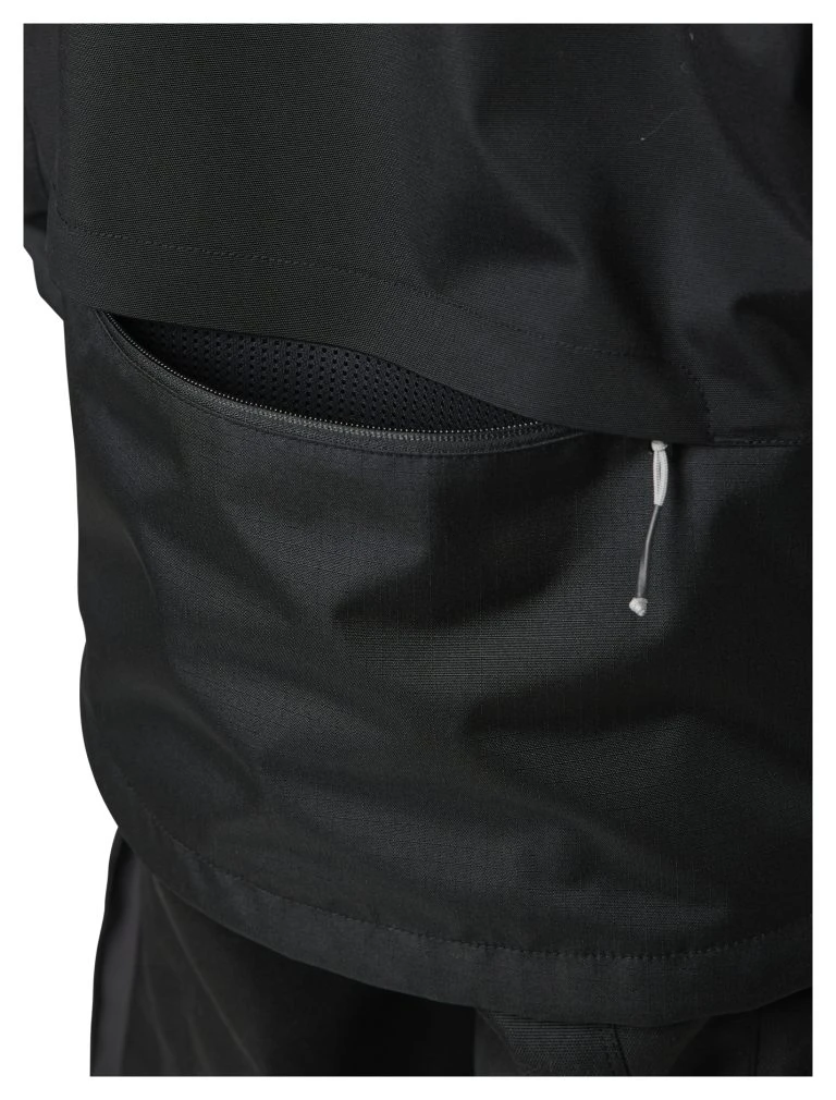 - Removable sleeve system allows jacket to be converted into a vest (sleeves can be stored in rear pocket)