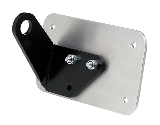 This axle-mount license plate bracket bolts to your 3/4″ axle using your stock hardware for a super clean tucked-in look. Plate can be mounted horizontally or vertically.