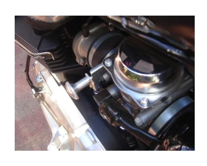 Fully CNC machined from billet construction with precision diamond knurled pattern to ensure a surprisingly comfortable grip. Replaces black plastic unit on stock Triumph Kehin carburetors and securely screws into place.