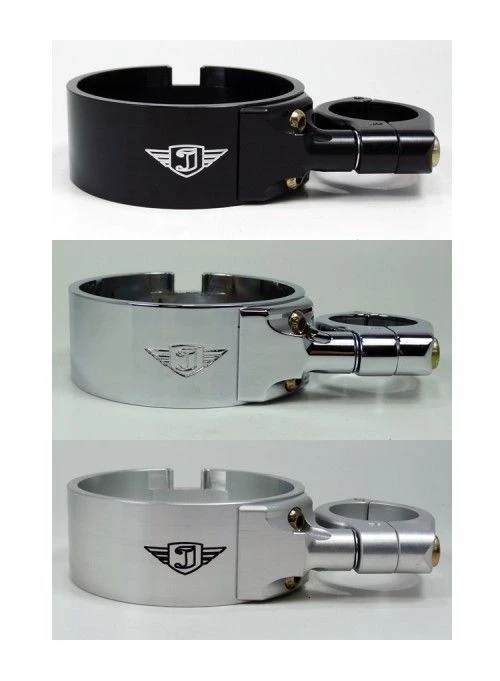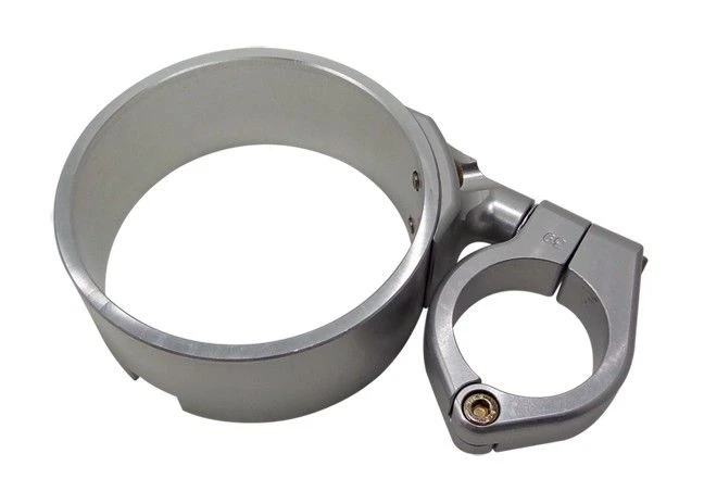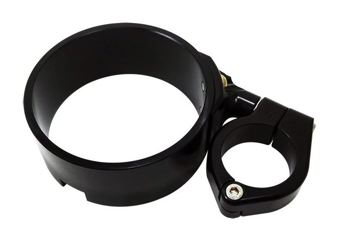 Mount without the removal of your front wheel or any disassembly of the front forks. Fully CNC-machined from solid bar for optimum quality. Bracket mounts to a 39mm fork tube and is adjustable in virtually every direction and should clear most fuel tanks. Visibility over the handlebars is greatly improved by removing your stock handlebar bracket mount; at the same time providing a real racy look.
