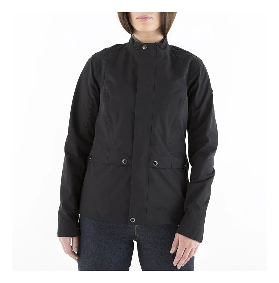 The Levett Jacket is a shorter waterproof jacket with a feminine cut and functional detail. Equipped with four external pockets and one interior pocket for excellent storage. The Levett also features stretch accordion panels over the back shoulders, a flattering back waist belt and a hidden gusset on the hem which opens up for a little extra room when sitting down.