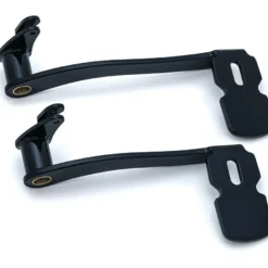 The answer to more leg room on floorboard equipped H-D Models. Levers move the location of the brake pedal pad while flattening the angle of the pad. Amount of extension varies depending on application, but the result is that your foot is no longer “under” the brake pedal, making braking easier and more natural.