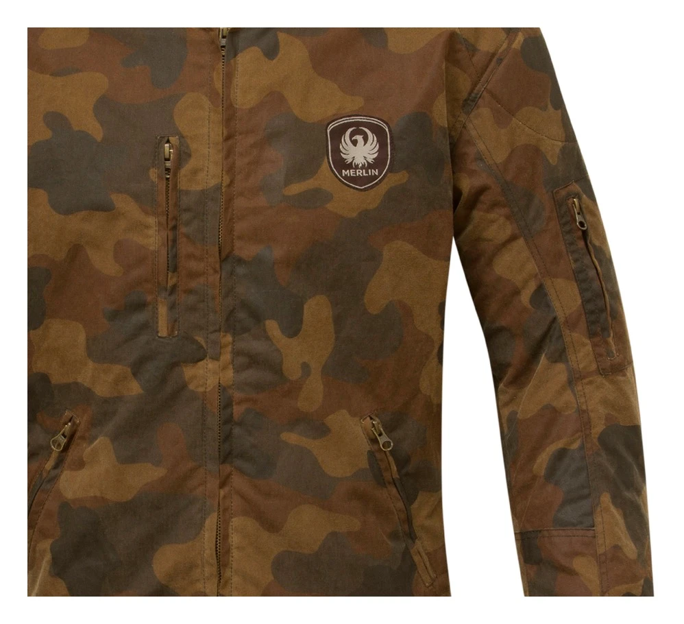 The Merlin Gunner Camo Wax Jacket is a retro sports cut riding jacket done in a lightweight waxed cotton material. Featuring a waterproof breathable membrane, CE level 1 armor at the shoulders, elbows plus an included back protector make sure the jacket performs as well as it looks.