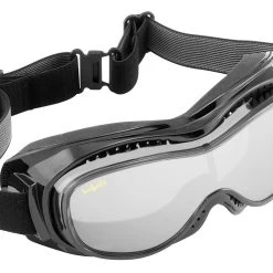 - Ventilated black plastic frame with soft contoured foam padding provides a tight seal to keep out wind