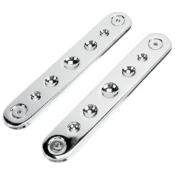 These filler bars cover the area left after removing or relocating your OEM front turn signals. They are CNC machined from 6061 T-6 aluminum, then chrome plated or anodized black with machined accents.