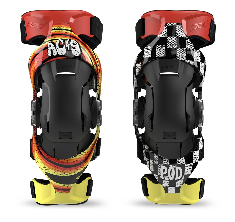 Fusing 70s-80s vintage moto styling with POD’s modern technology, the K4 V2 AC9 LE knee braces rock an eye-catching yellow, red and orange retro design on the right brace, with a classic distressed checker dominating the left one. The POD K4 V2 Knee Braces deliver next generation comfort and performance to the Motocross masses and is the first fully featured knee brace offered at an affordable price. The patented technology of the POD K4 V 2.0 Brace has been proven to reduce the risk of knee injuries while delivering unprecedented levels of strength, comfort, reliability and performance.