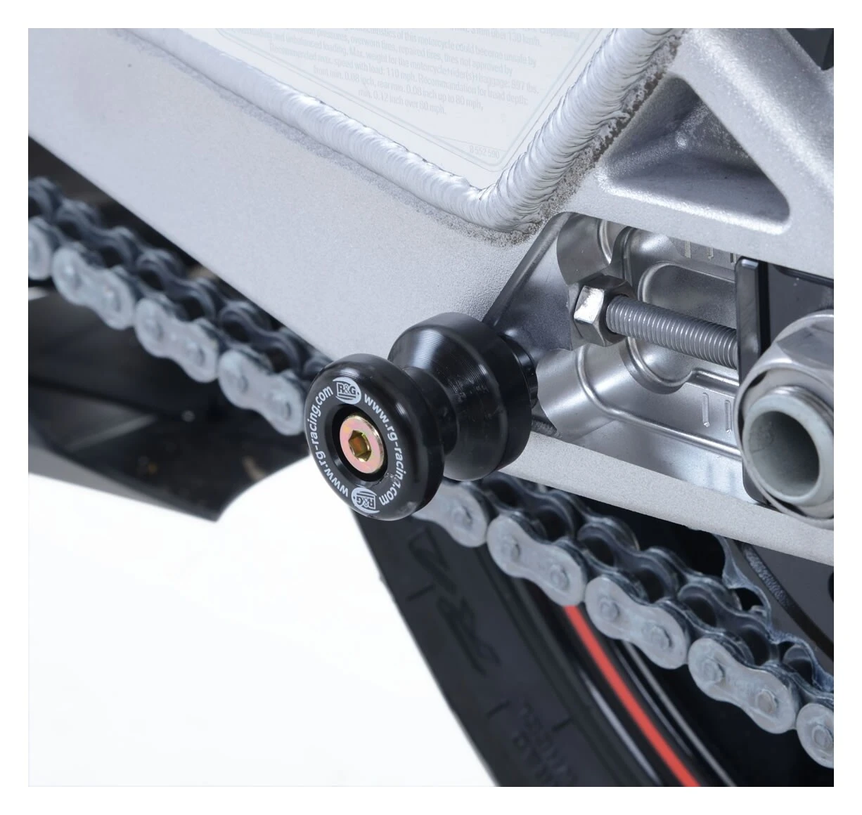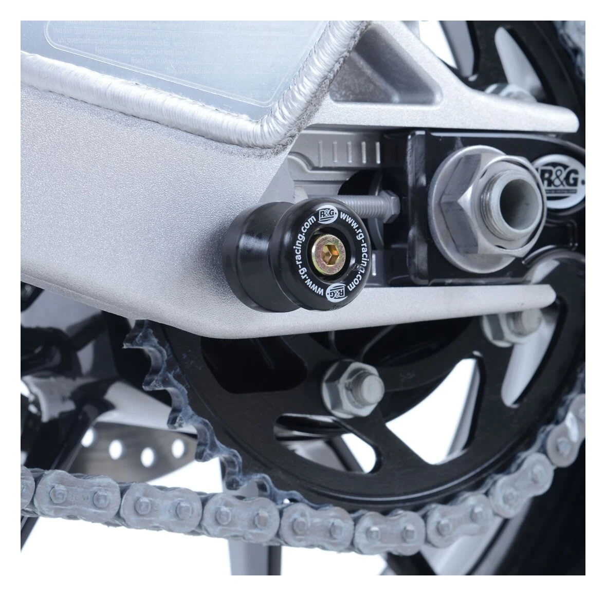 R&G Racing Swingarm Spools provide a set of hoisting points when using a rear stand and also help to prevent swingarm rash in a slide by providing some elevation.