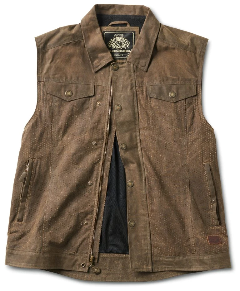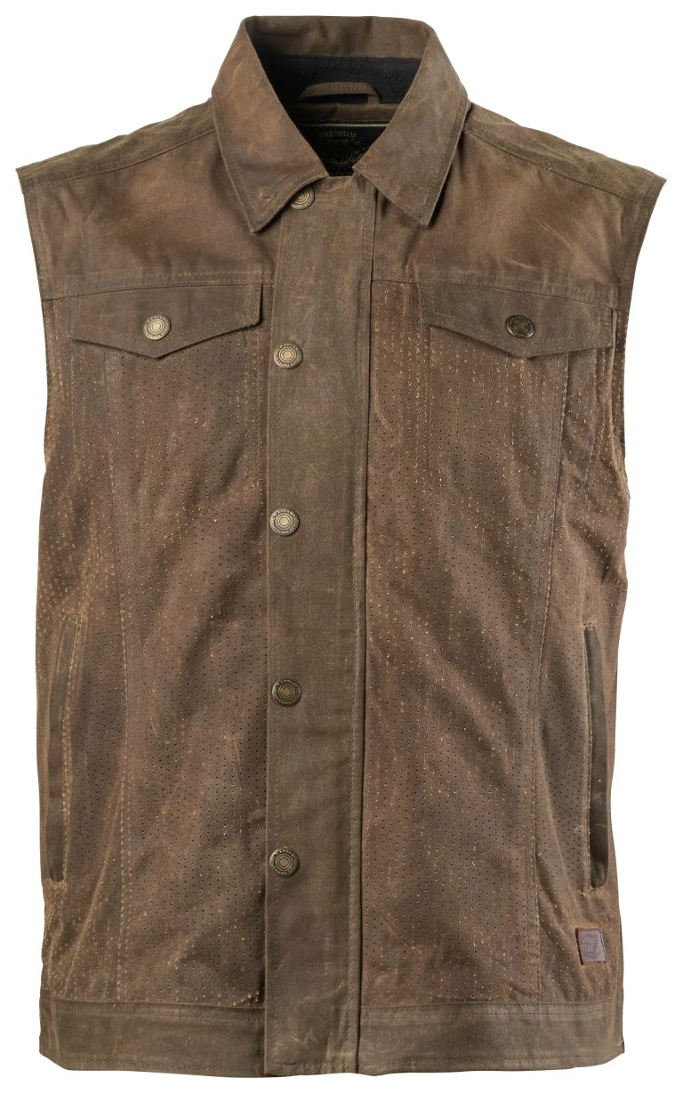 A no frills vest takes pride in its simplistic style. Laser perforated waxed cotton breaths for warm weather rides without giving up the abrasion resistance of the material. Add in an optional back protector to upgrade the protection.